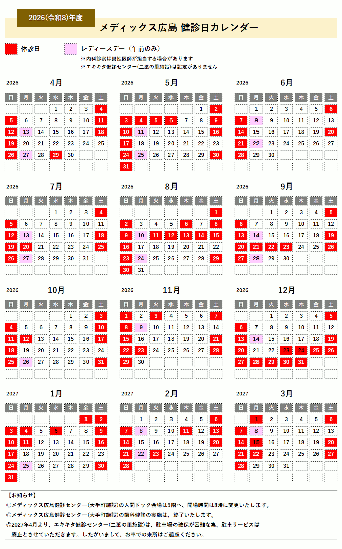 メディックス広島健診センター(大手町)の第二・第四月曜日の午前中は、レディースデーと